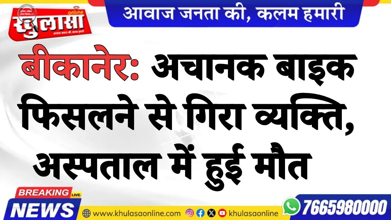 बीकानेर: अचानक बाइक फिसलने से गिरा व्यक्ति, अस्पताल में हुई मौत