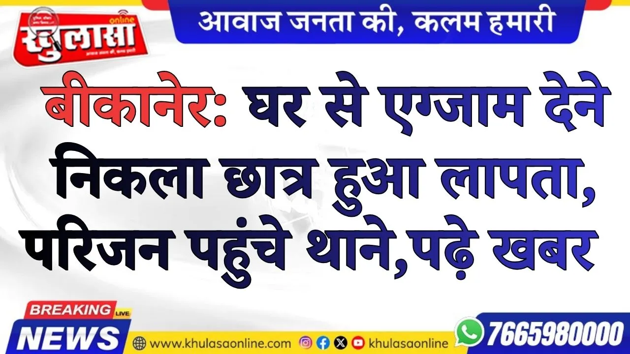 बीकानेर: घर से एग्जाम देने निकला छात्र हुआ लापता, परिजन पहुंचे थाने, पढ़े खबर