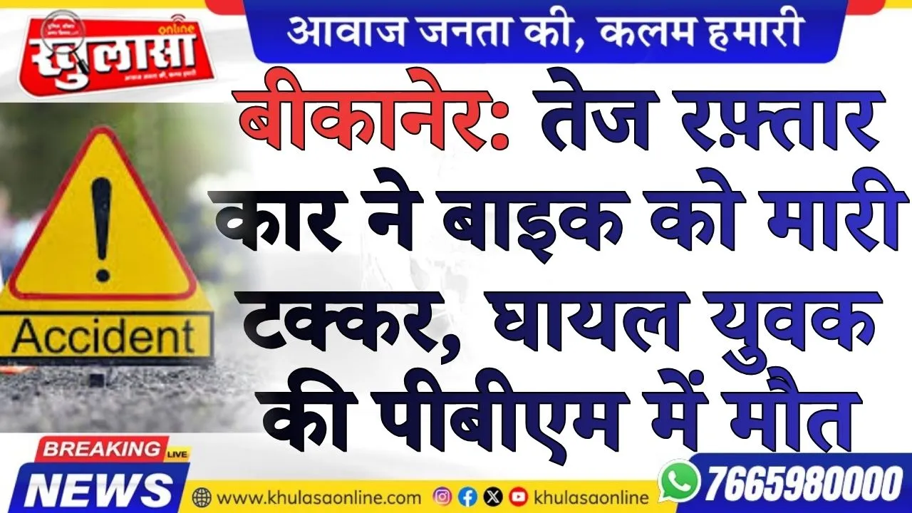 बीकानेर: तेज रफ़्तार कार ने बाइक को मारी टक्कर, घायल युवक की पीबीएम में मौत