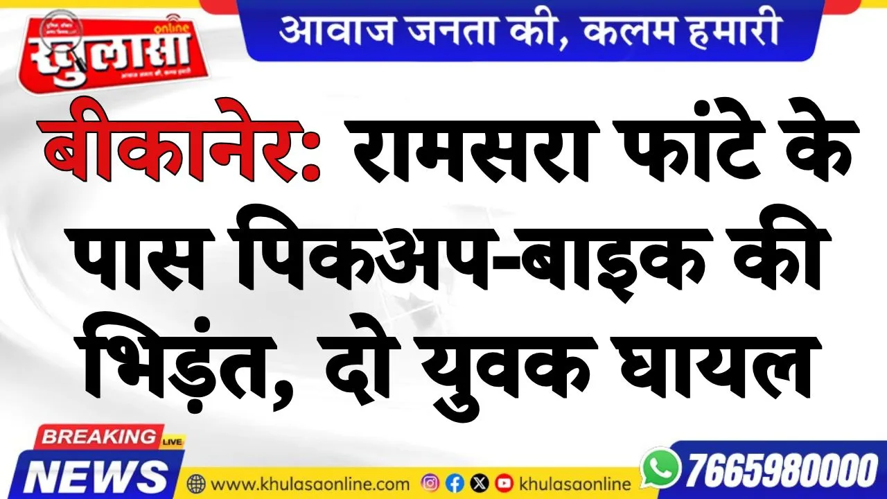 बीकानेर: रामसरा फांटे के पास पिकअप-बाइक की भिड़ंत, दो युवक घायल