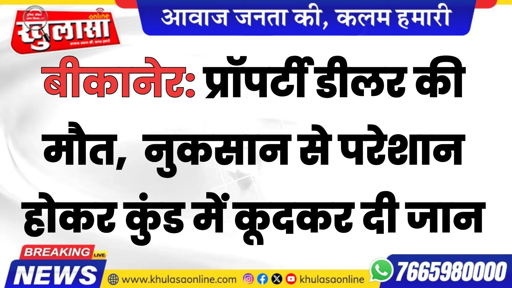 बीकानेर: प्रॉपर्टी डीलर की मौत, नुकसान से परेशान होकर कुंड में कूदकर दी जान