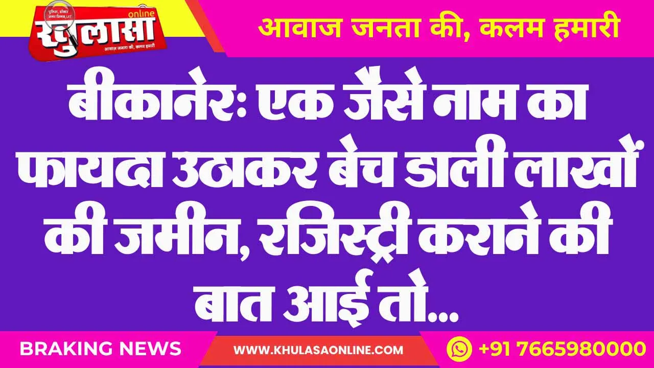 बीकानेर: एक जैसे नाम का फायदा उठाकर बेच डाली लाखों की जमीन, रजिस्ट्री कराने की बात आई तो…